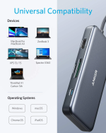 Anker 341 USB-C Hub (7-in-1) with 4K HDMI, 100W Power Delivery, USB-C and 2 USB-A 5 Gbps Data Ports, microSD and SD Card Reader, for MacBook Air, MacBook Pro, XPS, and More